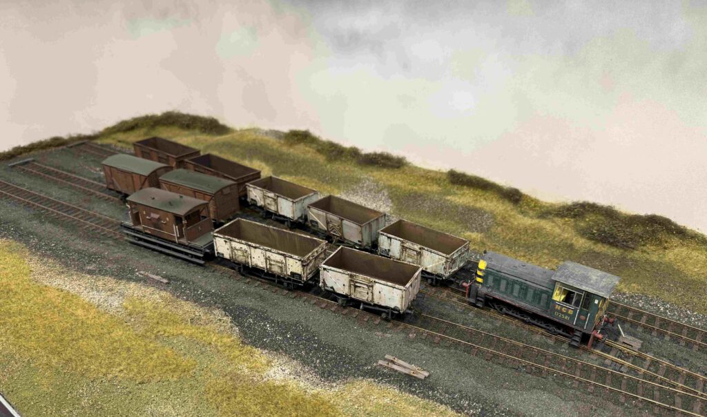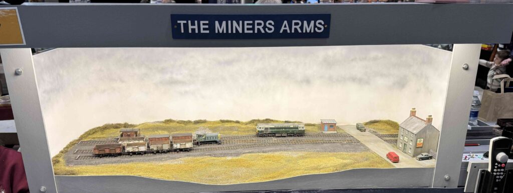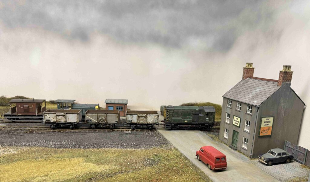 The Miners Arms depicts the far end of a colliery railway system.  A place where a few wagons are shunted and engines run around their brake vans before departing again to collect their loaded train of coal.  The layout has no particular location but can easily represent somewhere in South Wales or the Midlands.  The era is again flexible and set by whatever rolling stock, locomotives and road vehicles appear on the layout, though usually it is mid 1960s to early 1970s.